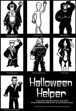 FACING PAGES: Halloween Helper is a mix-and-match costume card game that was designed during my years at Parsons School of Design. Detail (above) and full poster (right-hand page). 1980.