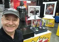 At the Trophyman booth at Los Angeles ComicCon, showing off some of the amazing pop culture objects that I helped design.