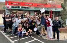 In Superior, AZ, with the cast and crew of 42 Seconds, a multiple-award winning independent film. I designed graphics and graphic props. Producer-writer-actor Judy Eisenberg and I are friends from the writers group in Los Angeles.