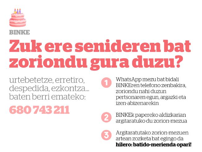 BINKEk ez du bere gain hartzen aldizkarian adierazitako iritzi edota esanen erantzukizunik.