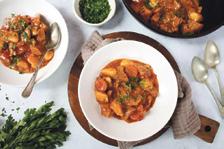 5. Picar los tomates, la cebolla y el ajo. Añadir a la olla junto al resto de los ingredientes del curry y 250 ml de agua, llevar a ebullición