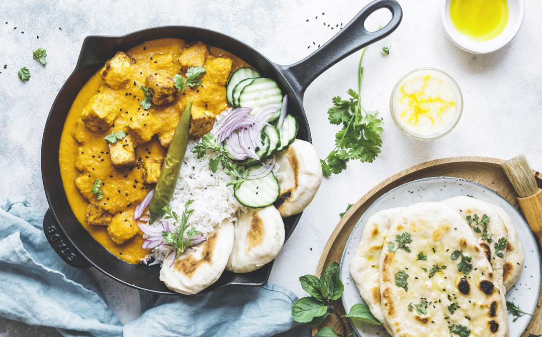 7. Servir con arroz basmati, pan naan de ajo y cebollas y pepinos encurtidos.