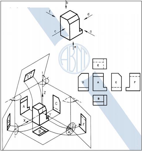 A NBR 10067, fixa a forma de representação aplicada em desenho técnico. Normaliza o método de projeção ortográfica, que pode ser no 1º diedro ou no 3º diedro e os símbolos para representação (Figura 01), a denominação das vistas, a