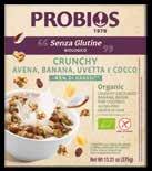 INGREDIENTI: *fiocchi di AVENA 43%, frutta essiccata 18% [(*uvetta 9% (uvetta 99,7%, distaccante: olio di semi di girasole), *cocco 6%, chips di banana 3% (*banana 68%, *olio di cocco, *zucchero di canna, aroma naturale di banana)], *farina di riso, *zucchero di canna, *olio di semi di girasole 7,1%, *sciroppo di mais, *miele, sale, antiossidante: *estratto ricco in tocoferolo. *biologico.