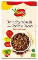INGREDIENTI: *semola di mais, *cioccolato fondente 19,5% (*massa di cacao, *zucchero di canna, *burro di cacao), *semi di girasole, *semolino di mais, *farina di grano saraceno 4,7%, *farina di riso integrale, *farina di riso, *zucchero di canna, *farina di amaranto tostata 2%, *cacao magro in polvere, sale marino, emulsionante: *lecitina di girasole. *biologico.