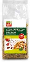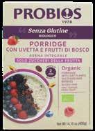 INGREDIENTI: *fiocchi di AVENA integrale senza glutine 85 %, *uvetta sultanina 14%, *frutta di bosco essiccati 0.7% (*mora in pezzi, *mirtillo, *fragola in pezzi, *lampone in pezzi; distaccante: *olio di semi di girasole), mela essiccata in pezzi. *biologico