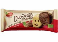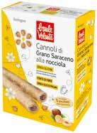 INGREDIENTI: *crema alla NOCCIOLA e cacao 32% (*zucchero di canna, *olio di semi di girasole, *burro di cacao, *pasta di NOCCIOLE 13%, *LATTE scremato in polvere, *cacao in polvere 3%, emulsionante: *lecitina di girasole, *estratto di vaniglia), *farina di riso 18,5%, *farina di AVENA 16,4%, *farina di mais 16%, *zucchero di canna, *cacao in polvere 4%, sale. *biologico.