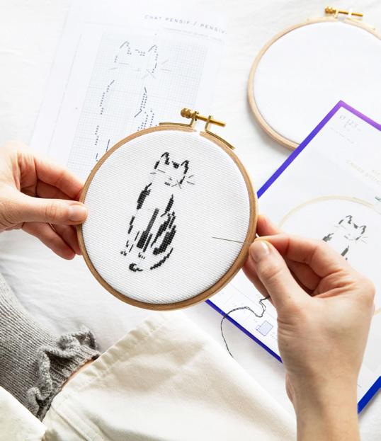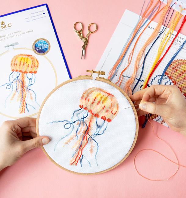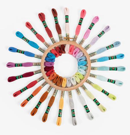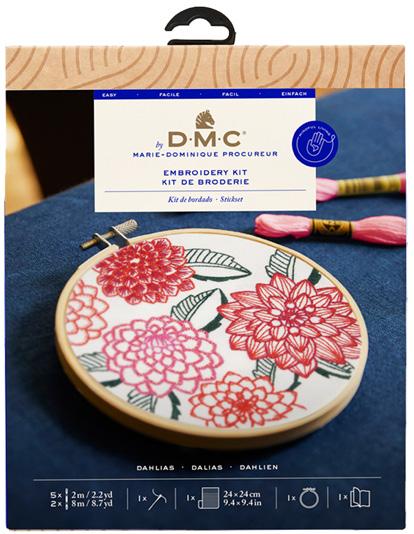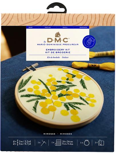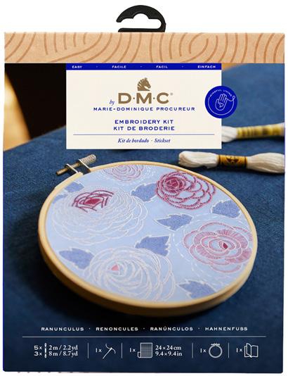 Each kit contains: Mouliné Spécial® 2 m skeins, 100% cotton printed fabric 24 x 24 cm, hoop 14.5 cm, embroidery needle & instructions.