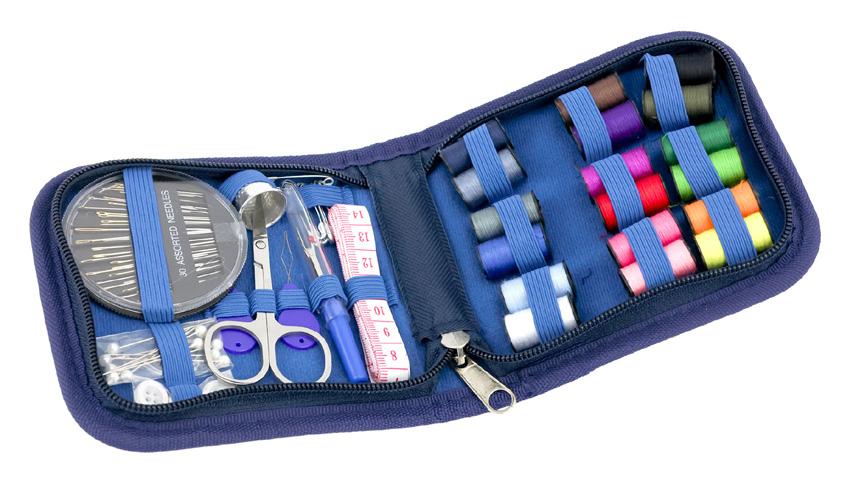 2.5 x 12 x 12.5cm. Kit contains an assortment of essential sewing accessories packaged in a compact zippered case.