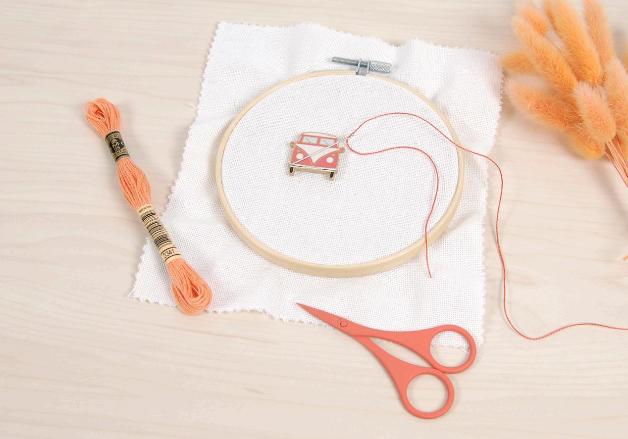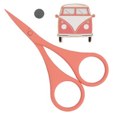 This scissor and needle minder set makes a lovely gift and is a handy addition to your own craft stash. It includes a pair of 3mm thick stainless steel scissors and a campervan-shaped needle minder, which helps keep your needle safely in place while you take a break from stitching.