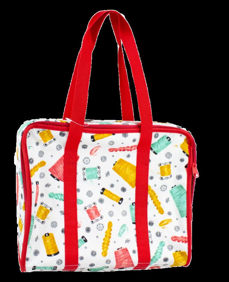 A great craft storage bag with a centre zippered closing and shoulder style carry straps. There are 3 clear plastic pockets inside, pin cushion and a small elasticised storage area for pens, pencils and other tools. Functional and fashionable, keeps your tools and sewing necessities organised and ready for use or transport.