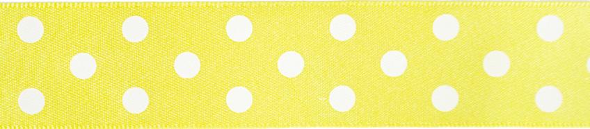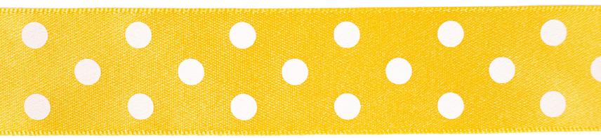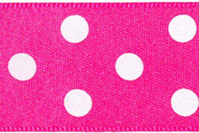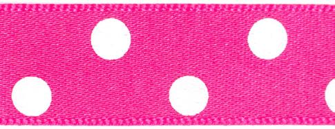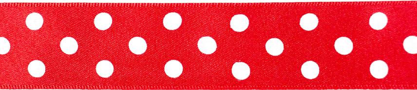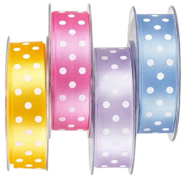 Decorative ribbon with polka-dot print and smooth satin finish. This beautiful, timeless design ribbon can be used for decorating gift packs, scrapbooks and craft projects.