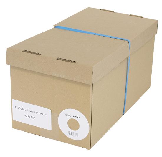 25 or 50 reels of assorted ribbons in a box