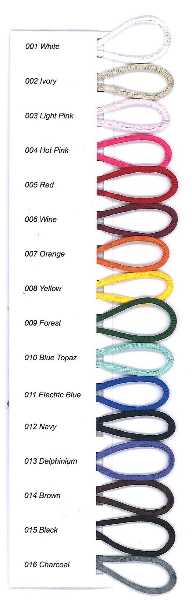 3mm 5mm 7mm 10mm 15mm 25mm 35mm 50mm 70mm 6847 Flo. Green 672 Marigold 6844 Flo. Orange 6846 Flo. Yellow 412 Topaz 6845 Flo. Pink 980 Cypress 679 Yellow 55 Rust 664 Meadow 678 Honey Gold 908 Scarlet Berry 24 Bottle 9790 Pearl 49 Plum 79 Moss 37 Gold 677 Flame 80 Khaki 5 Lemon 489 Russet 23 Emerald 45 Ecru 405 Burgundy 675 Parakeet 419 Bridal White 952 Liberty 56 Mint 6835 Straw 15 Red 455 Hunter Green 50 Cream 17 Wine 969 Forest 1 White 19 Purple