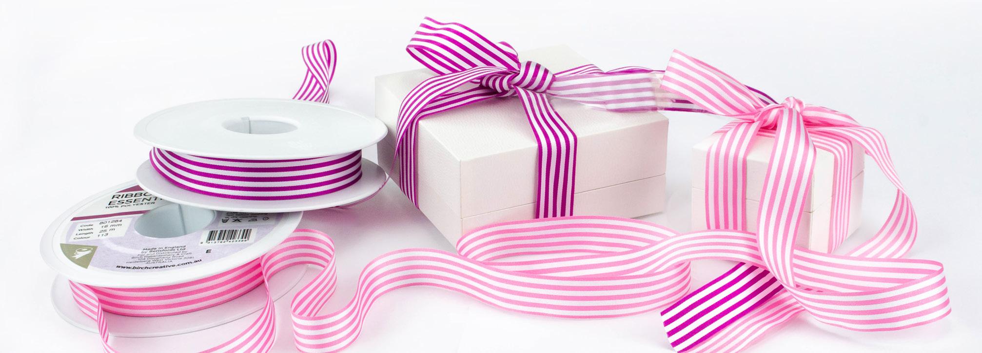 Get a variety of gorgeous ribbons, coordinated in a variety of widths and colours, textures and styles for all creative needs.
