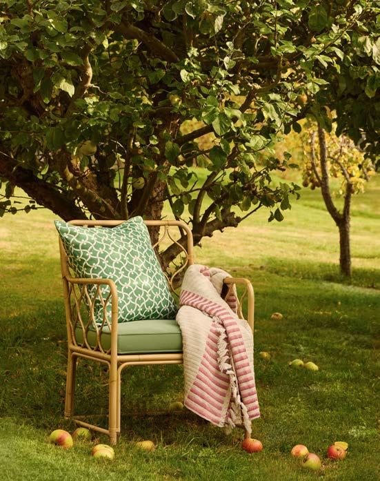 Curato Garden Armchair - $1,250, Ogee Outdoor Cushion - $245, Dopatti Throw - $385