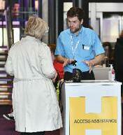 This area, which is located inside the entrance near the main doors, is staffed by a dedicated and specially trained Visitor Service Assistant. They welcome our guests and can provide any advice or assistance required. There are scribble pads for staff to communicate with customers if required. There are also resources and equipment available to borrow from this desk such as Hearing Assistance Headsets, Audio Description Headsets (available for AD Performances only), noise cancelling headphones, fidget toys, light reducing glasses, and pre-booked wheelchairs. They can also issue one of our Access Lanyards which highlights to staff that the customer has additional access needs for which they may need assistance during their visit.