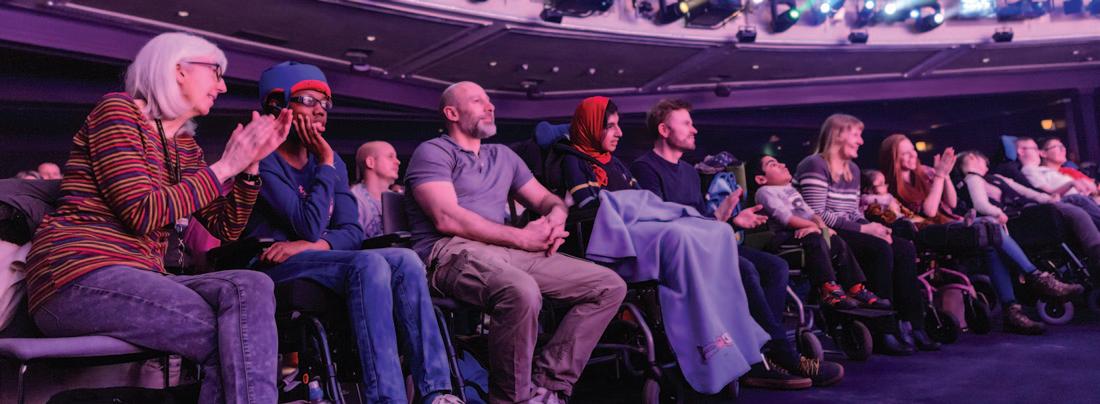 This includes people who identify as neurodiverse; have a learning, sensory, communication or mobility need; or those who need to access our BSL, Captioning or Audio Described provision. We encourage and create an atmosphere where everyone feels safe and able to react to a show as they wish. We sell fewer seats, which means more room for wheelchairs and more space and comfort.