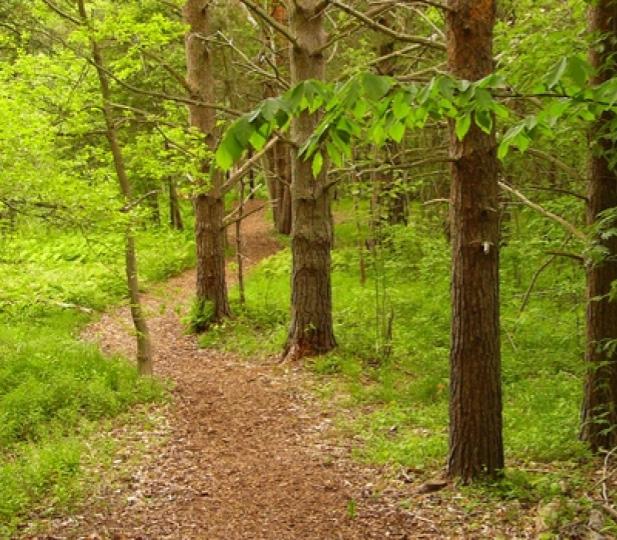 Rather than gardening within fortress-like walls, a sanctuary garden works with native shrubbery and trees to muffle external noise and disruption. Broad-leaf evergreens like Mountain Laurel (Kalmia latifolia) or rhododendron (Rhododendron) form a green border all year long. Alternatively, red twig dogwoods (Cornus sericea) grow quickly and offer leafy cover from early spring through fall, creamy white flowers followed by berries in the spring, and a striking red tangle of twigs to add color to the winter scene.