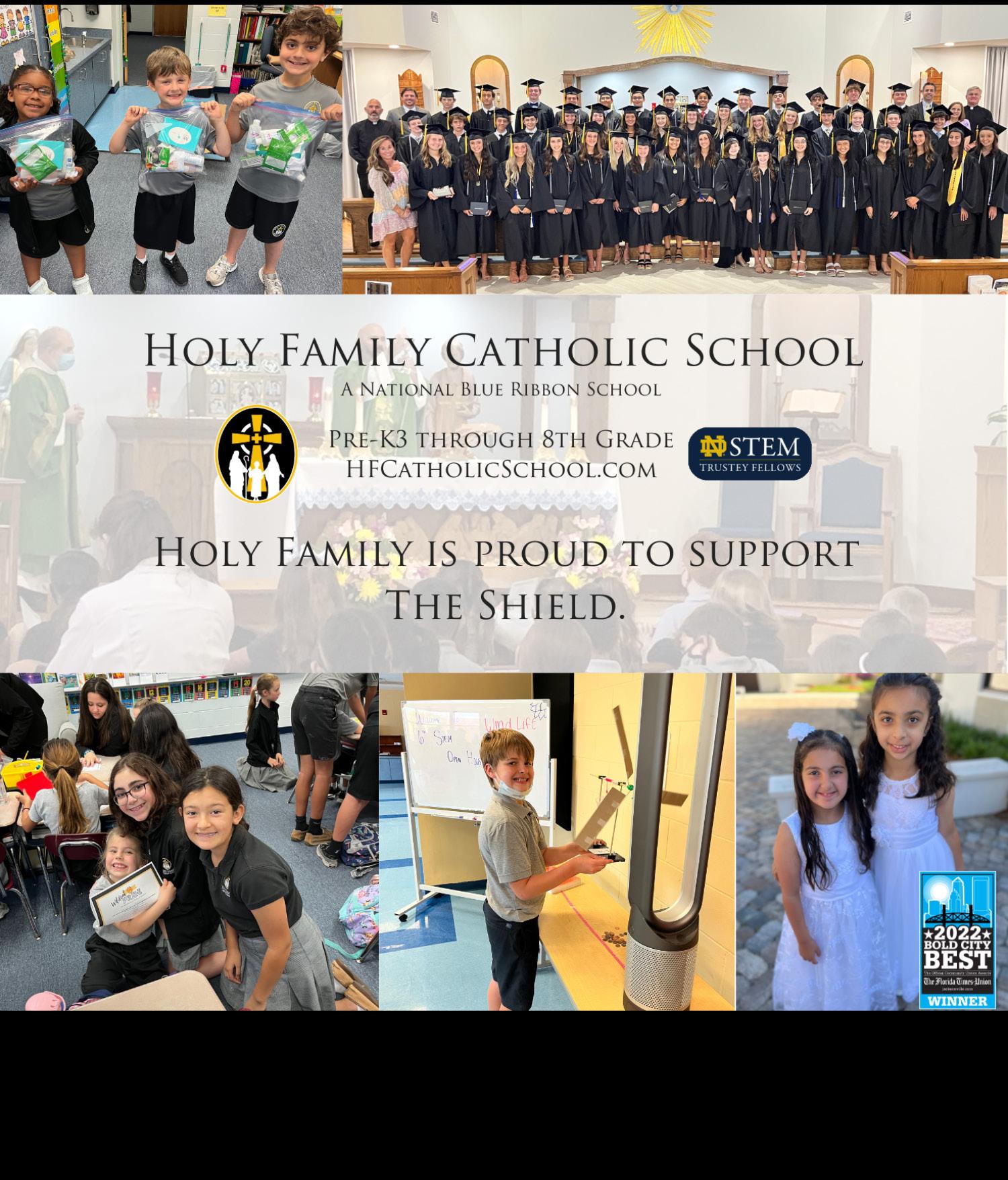 The policy of The Shield is to provide a forum for student expression. If you are interested in advertising in The Shield, email newspaper@ bishopkenny.org for more information. Letters to the editor are encouraged; submit to room 224. Names can be withheld upon request. The Shield is a member of FSPA.