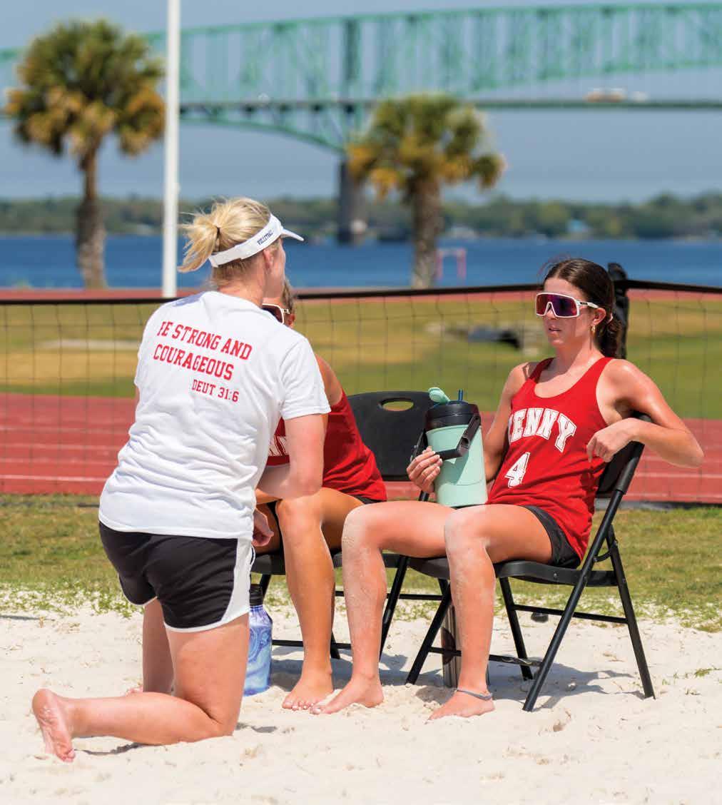 Chelsea Wilhoite Kroll ’07, who coaches beach volleyball at Gulf Breeze High School, led her team to win the 1A State Championship on May 12, 2024. This achievement makes her the first female coach to secure a state title for beach volleyball in Florida. In her third year at Gulf Breeze, Chelsea’s team is the only one to finish the season undefeated and untied. Chelsea, a former player and BK assistant coach for volleyball, also competed at the collegiate level for West Florida.