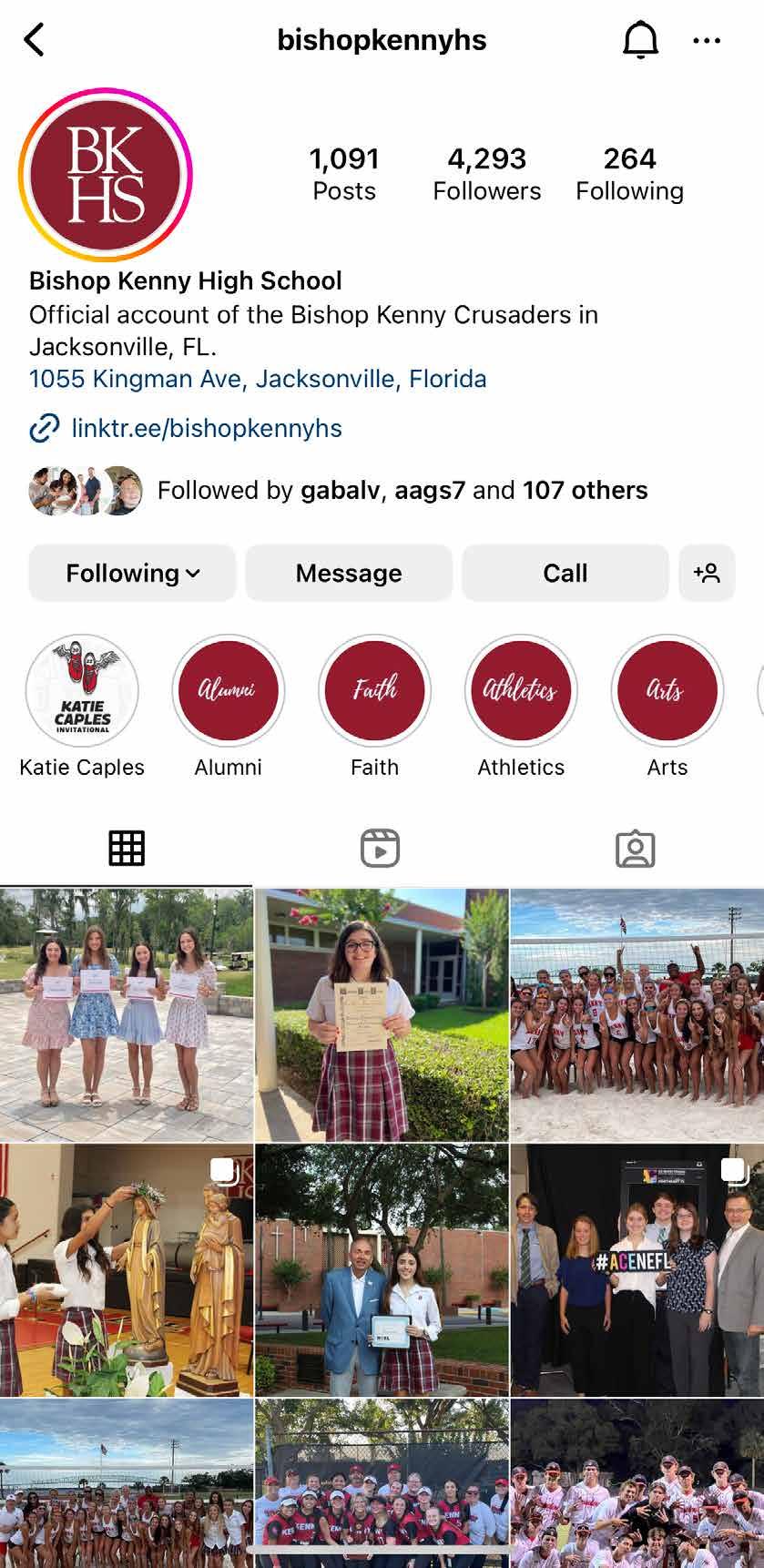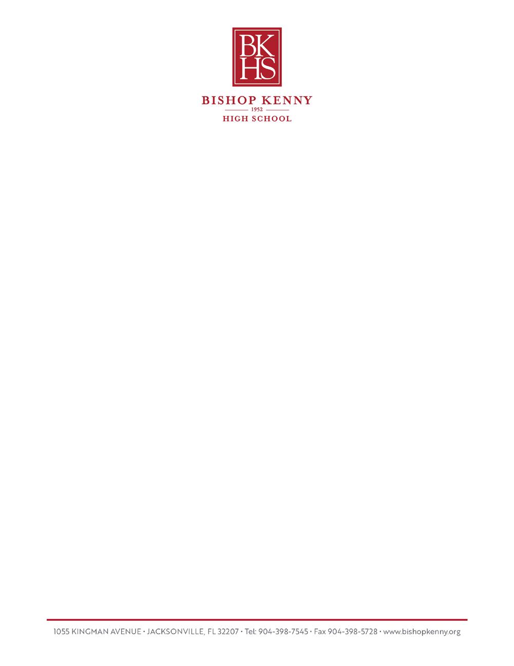In instances where a brief general profile of the school is needed, the following paragraph may be used: Bishop Kenny High School is a Catholic college preparatory school located on the south bank of the beautiful St. Johns River in Jacksonville, Florida. For more than 70 years, Bishop Kenny has provided students with a vibrant and welcoming community where founding Catholic virtues echo throughout the halls, calling those who enter to live a life of purpose and service. An ever-changing array of student needs and interests continues to shape BK, but Crusader families find the tradition of excellence and faith is unwavering. Our more than 1,300 students learn the social, emotional, and academic skills necessary to meet the demands of college and ultimately thrive in their chosen careers or vocations. Most of all, they learn to be persons of integrity, making positive contributions to their faith, family, and global communities.