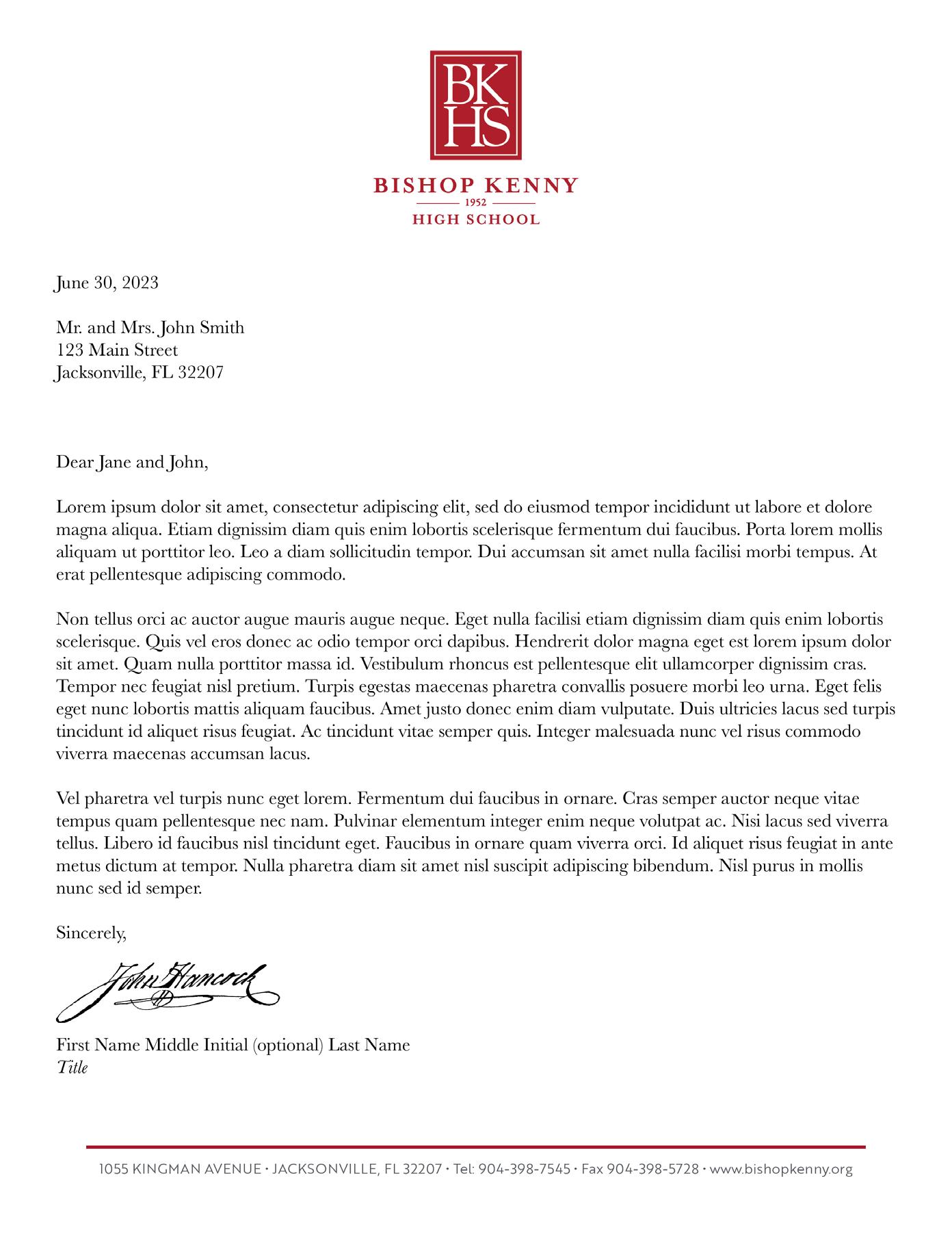 DEDICATED LETTERHEAD OPTIONS ARE AVAILABLE FOR SELECT OFFICES: ADMISSIONS, ADVANCEMENT, ATHLETICS DIRECTOR, CAMPUS MINISTRY, SCHOOL COUNSELING, & PRINCIPAL.