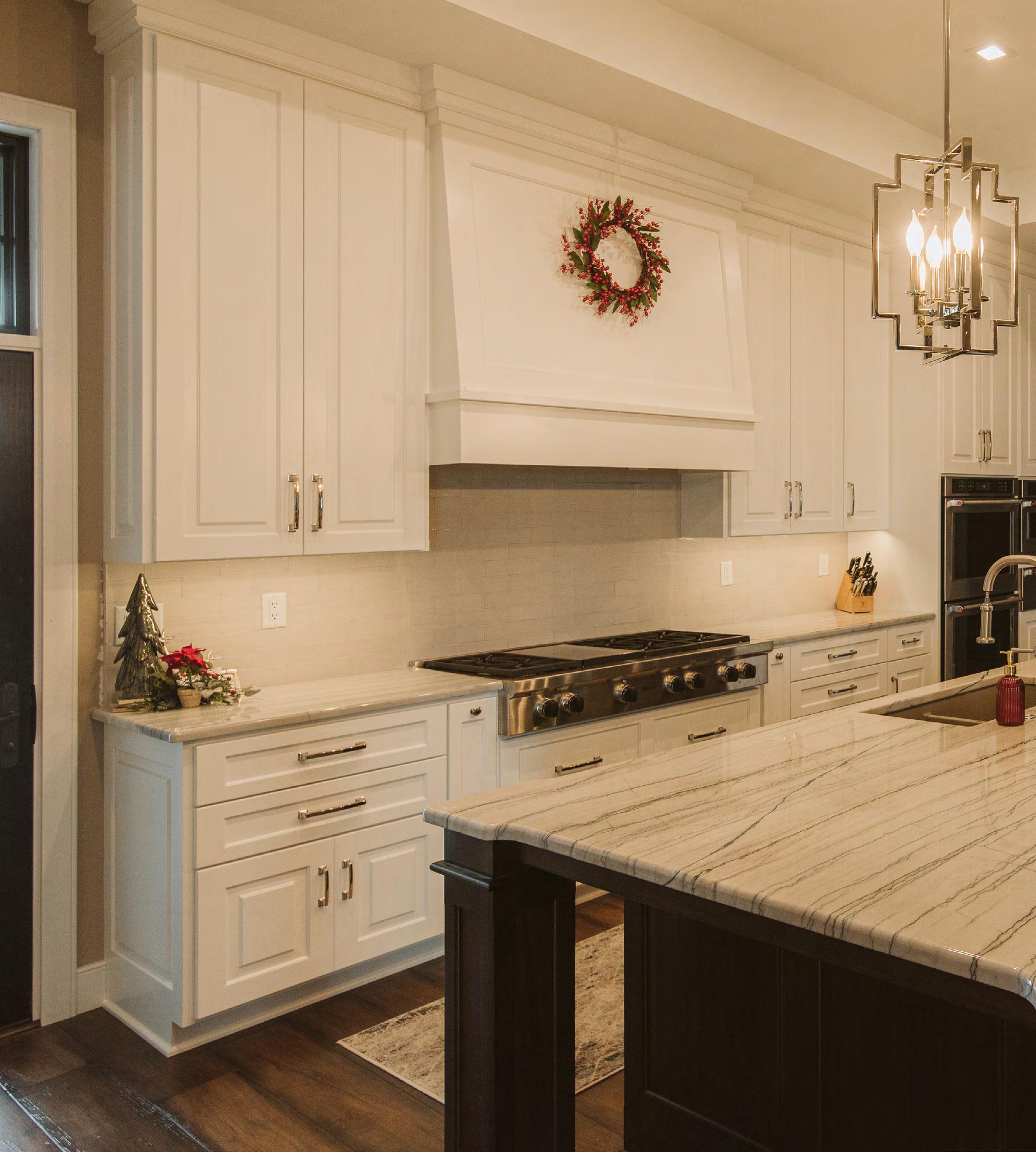 Together, the homeowner and Elite Homes crafted a beautiful home just in time for the holidays. “I like the style of the house,” Kasey says. “We had good direction… The homeowner has good taste, picked everything out very nice, and kind of gave us free rein to do nice features and things.” The homeowner attributes the home’s successful build to Kasey and Cody’s hard work and expertise. “Kasey and Cody are some of the most patient builders I’ve ever worked with, and… their workmanship is amazing.”