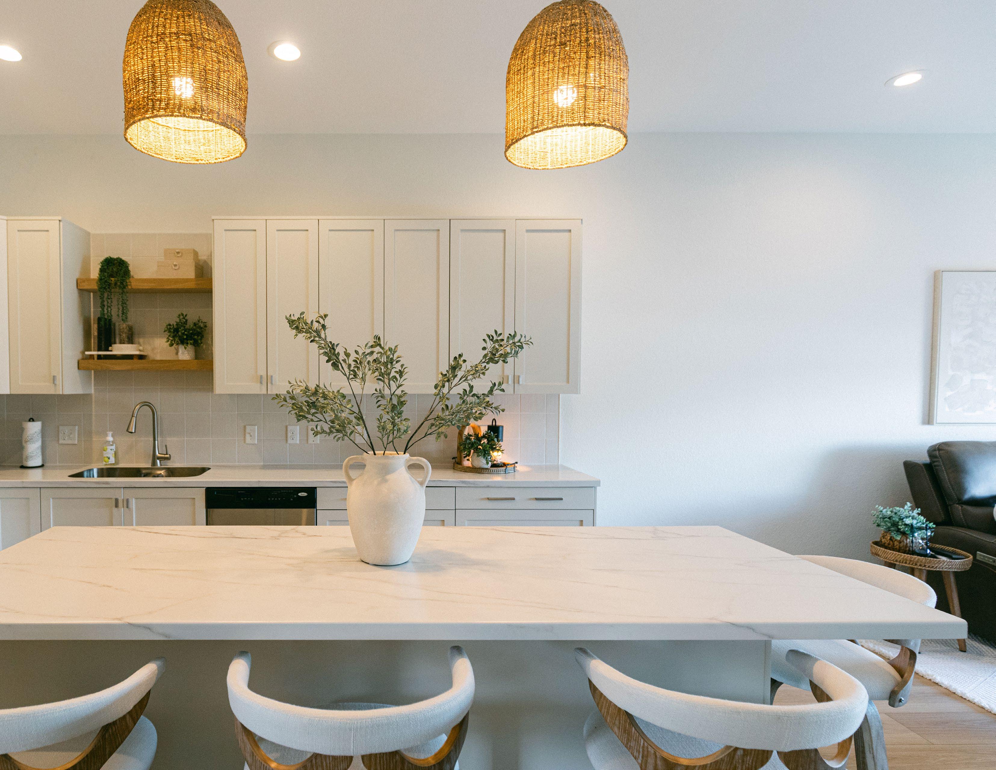 When the homeowners first bought the townhome in August of 2024, they talked about the possibility of a remodel in the future, but liked the home as it was. When plans for a hot tub were thrown out by her husband, the homeowner saw her opportunity for a larger remodel of the interior. After creating a budget, the two were able to begin planning for a coastal refresh.