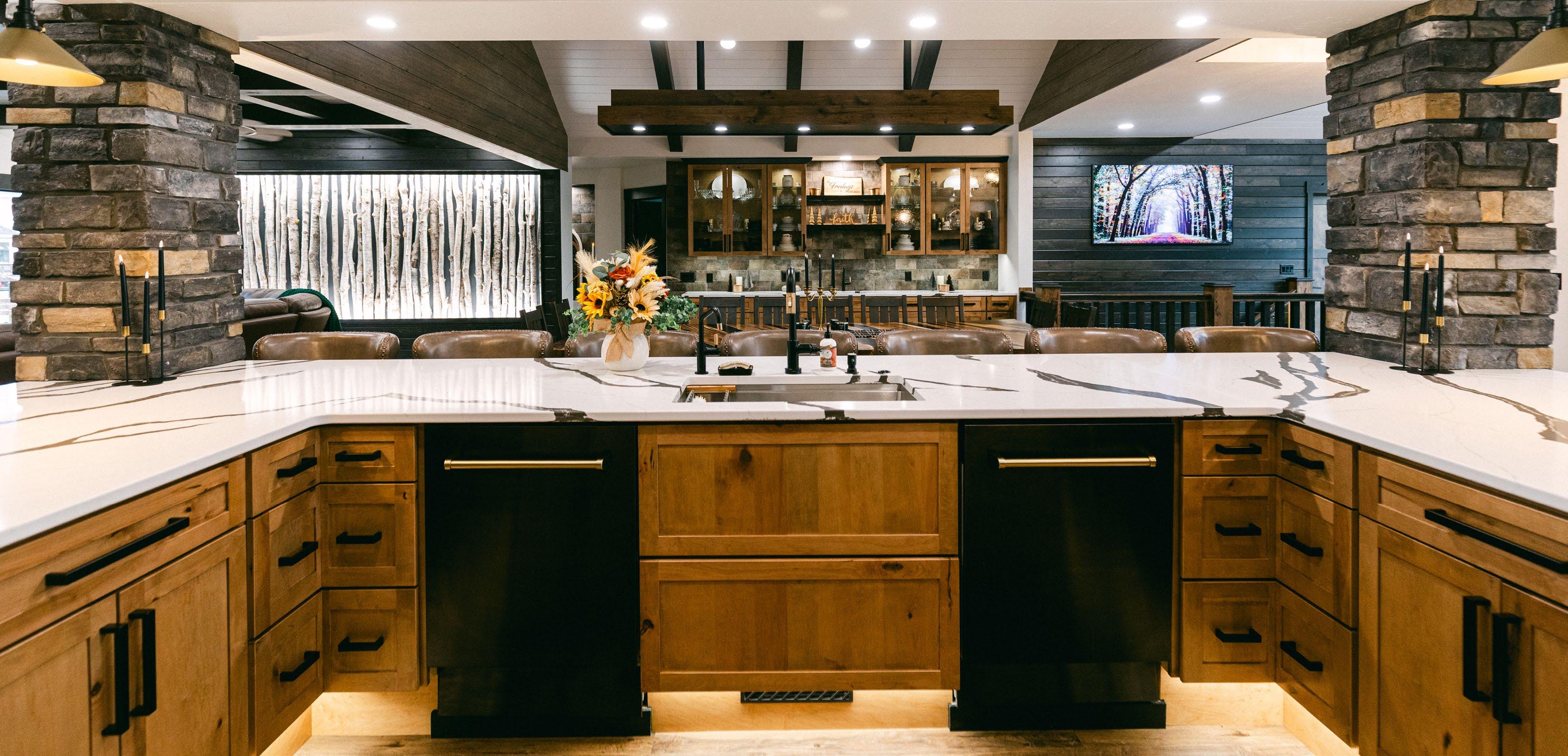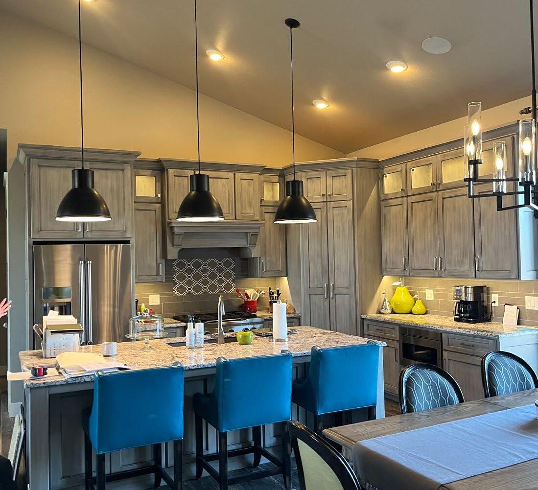 in stages, before the most recent large remodel. Lindsey wanted the remodel done before their next child’s graduation in May of 2024. With construction beginning May 10th of 2023, the timeline was tight. “I said, I’ll get it done, and she goes, I hope so,” recalls Todd. “I knew I had to live up to it, so the last week or two there were literally 10 or 12 vans out front… We made it with about two days to spare.”