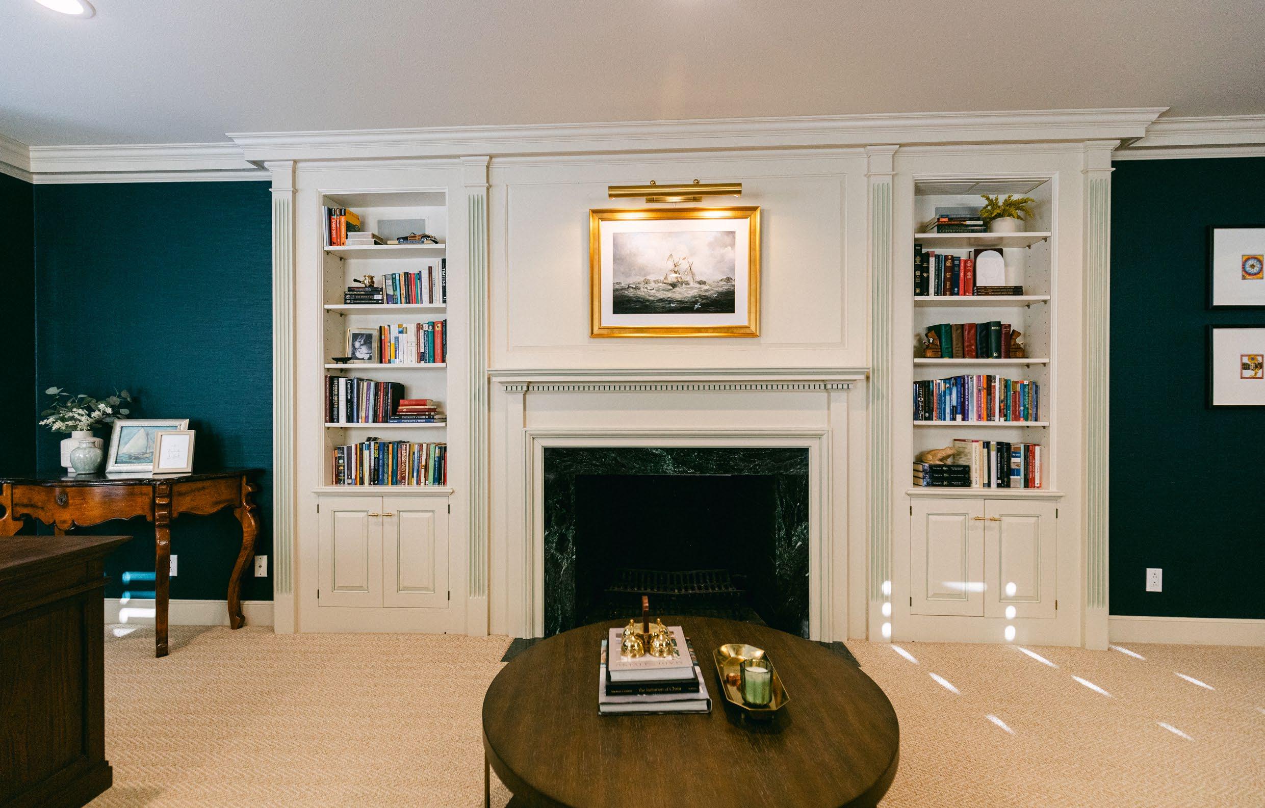 On the main floor, Jean was careful to choose what would blend well with what was original to the home. “That was the fun part of it,” she tells. “We were really able to redo a little, but a lot of what you see, like the built-ins, were here.”