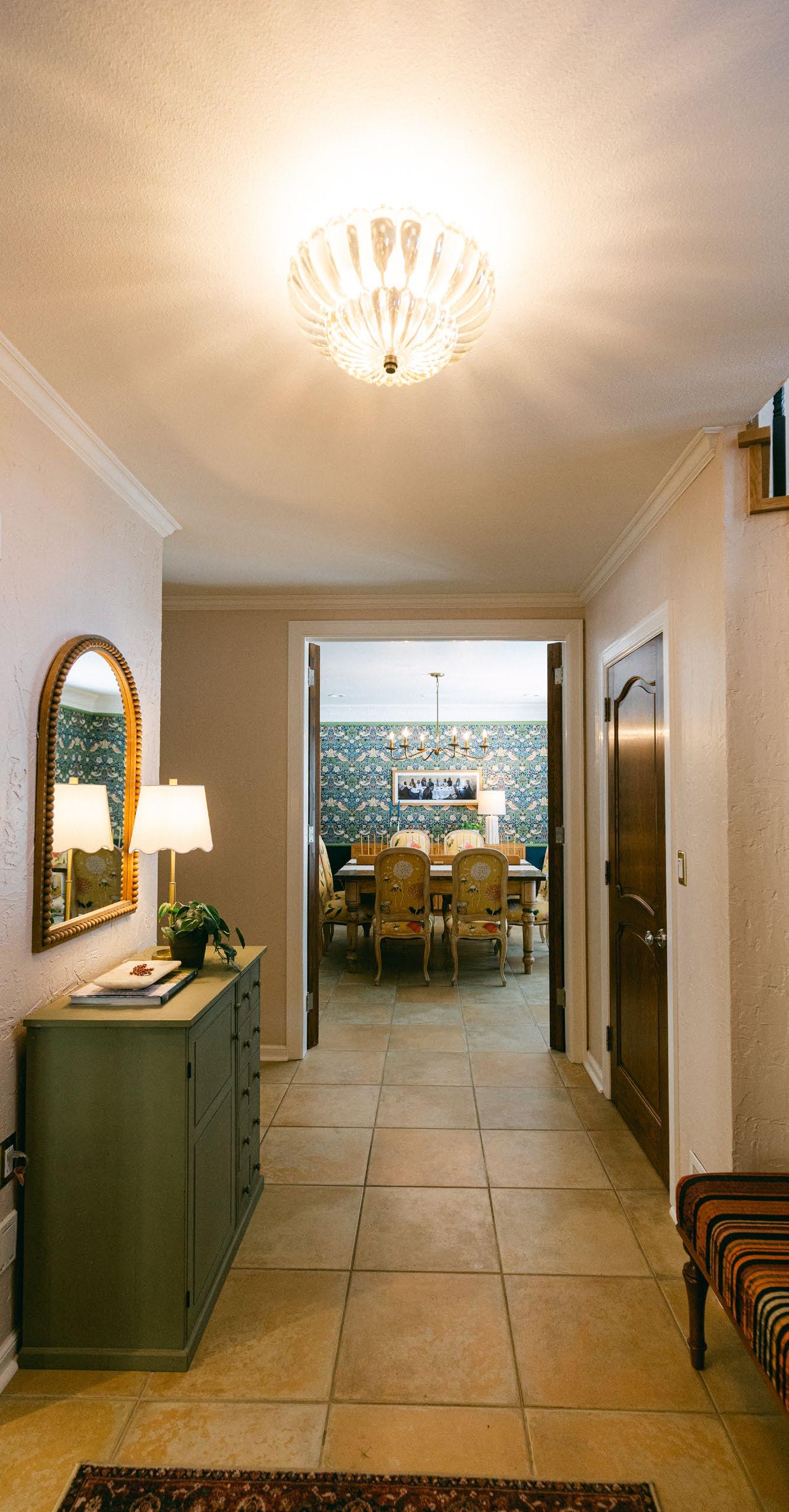 In this way, Jean is able to bring out the best of any home she works in. Particularly for this home, it is impossible to tell what was kept and what was brought in new, as Jean expertly blended the two together. Many of the light fixtures are new, while the tile flooring is original and the white oak wood floor is new. All the hardware throughout the house has been redone, while the wood shutters are original. The crown molding and wall texture in the home is all original as well, just refreshed with a new paint coat. Overall, the home’s distinct traditional style pairs beautifully with the playful design. “The modern English home elegantly blends the charm of traditional English aesthetics with contemporary elements to create spaces that are stylish and timeless,” describes Jean. “It’s been a labor of love.”