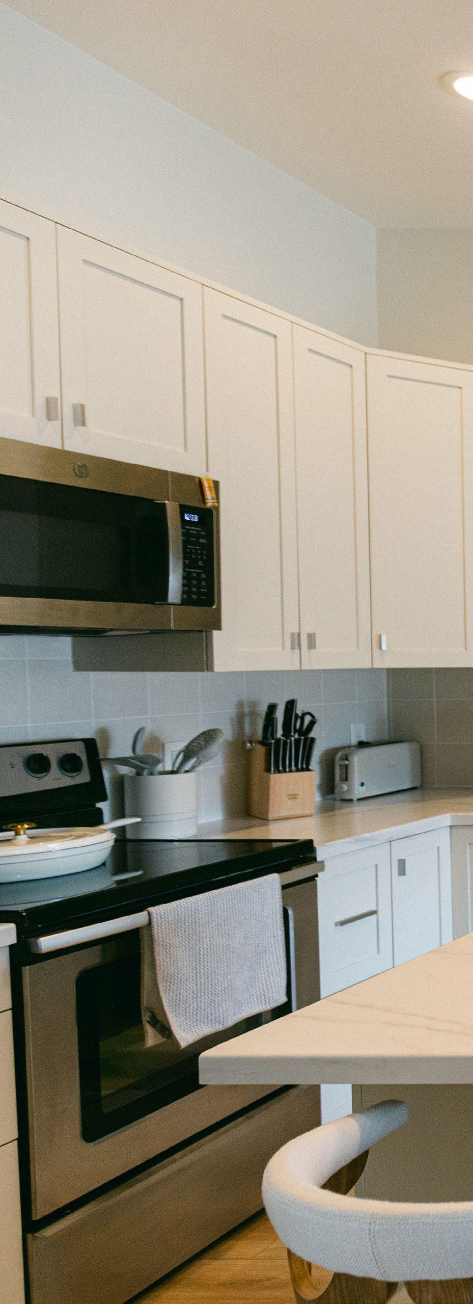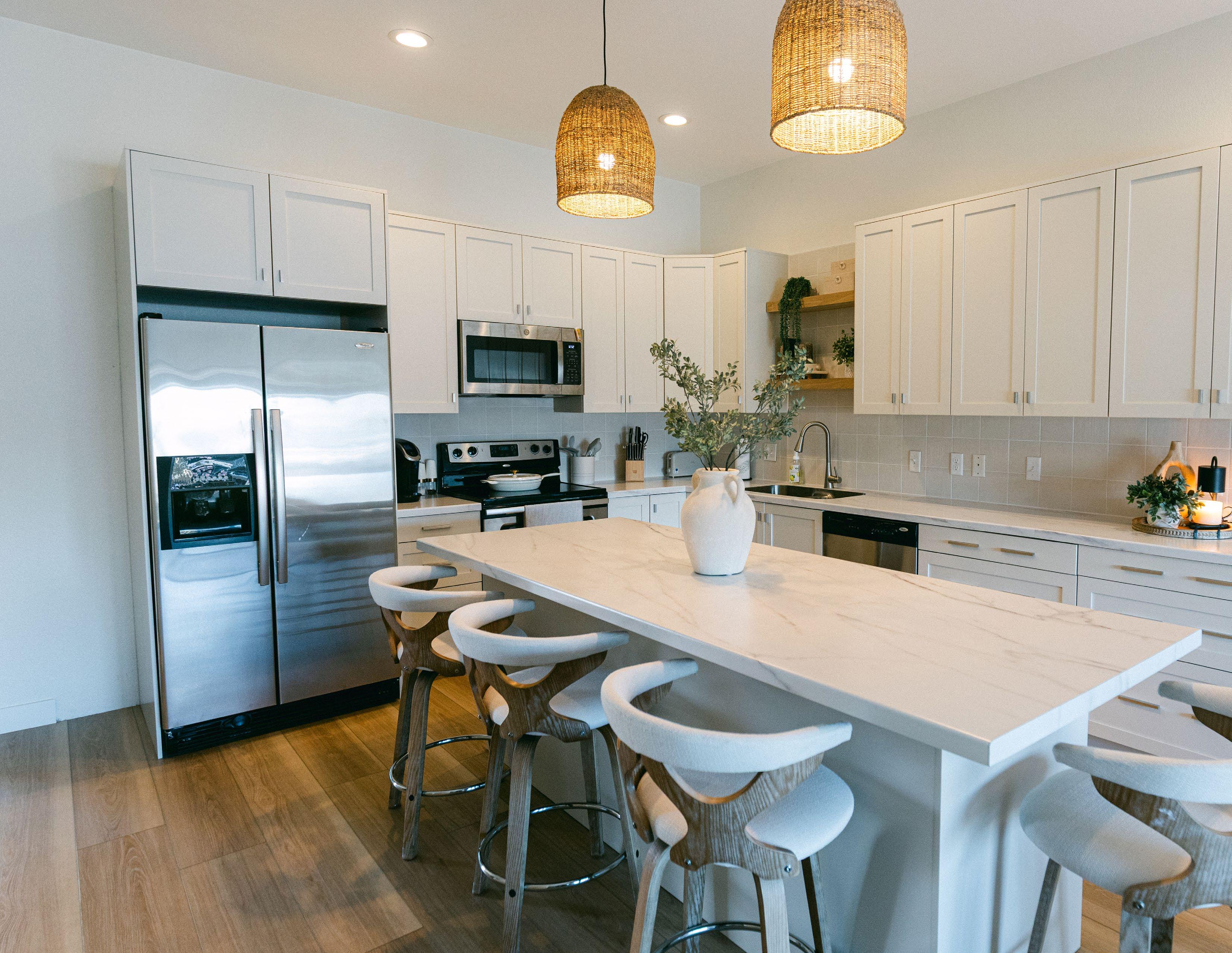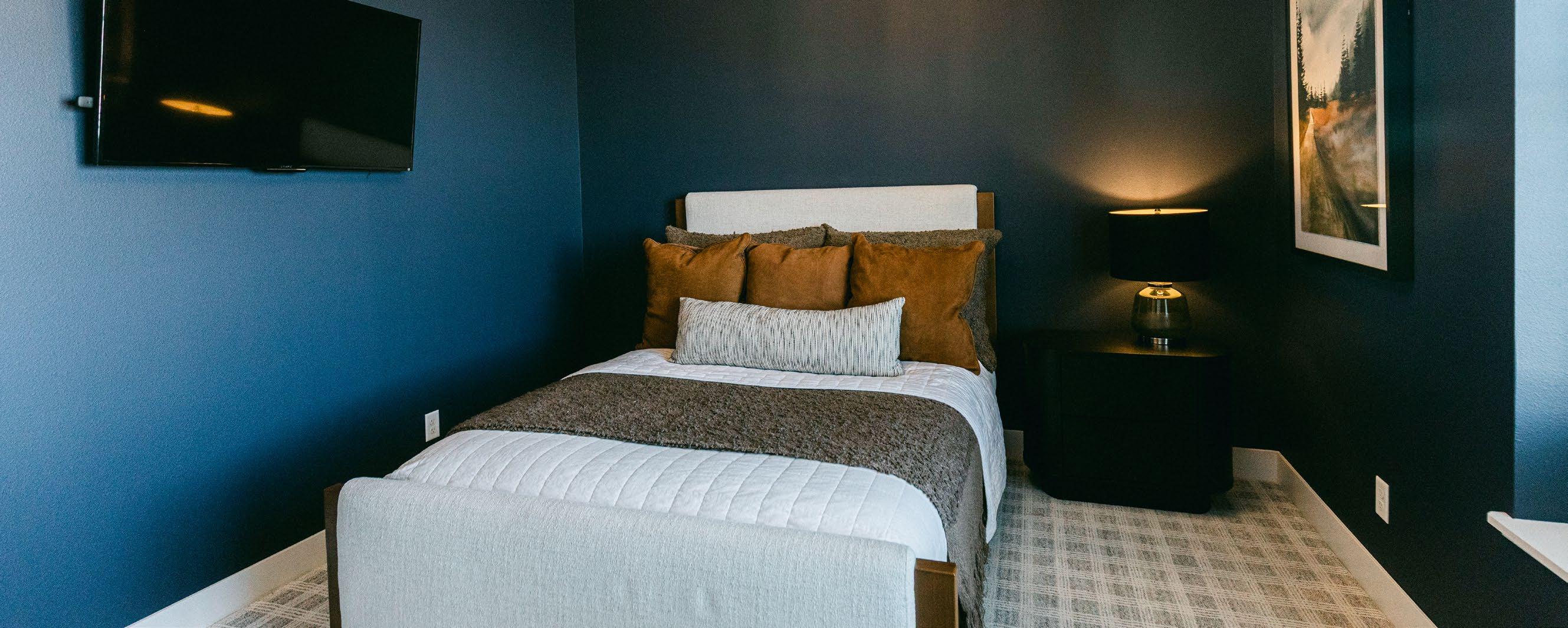 The apartments received new cabinetry, new window treatments, new furniture, and new flooring and baseboards. Design choices reflect a neutral modern finish that feels cozy, clean, and safe. The team at PWB also made sure to include amenities such as new TVs and other fun activities to modernize the space and make it feel more homey. The detailed finishes make the apartments feel like a retreat away from stress and anxiety.