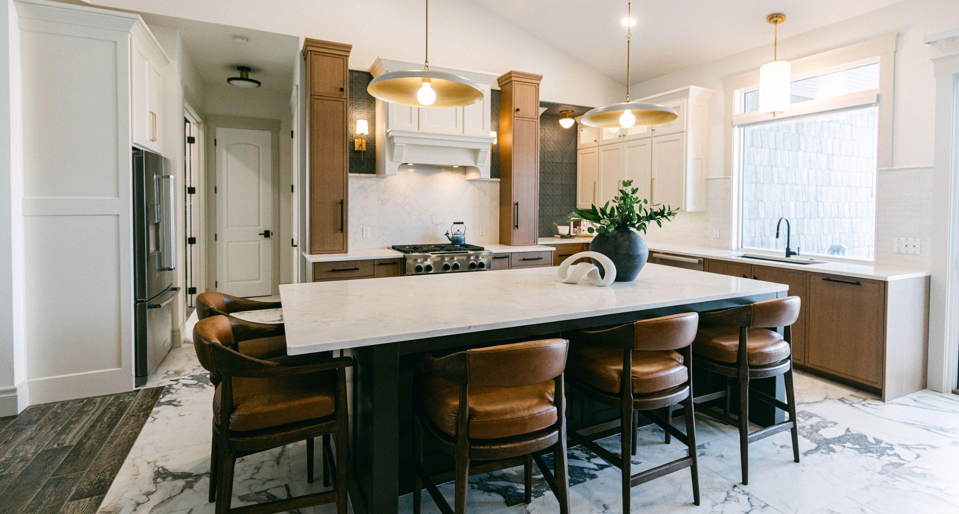 own. After pulling up images of the home, Tom immediately saw the potential. “I was like, we want to be a part of this,” he recalls. “That home has so much character, even just on the outside.” Tom brought Jean onto the project, and after meeting with the homeowner, she knew this was going to be a fun project. “The homeowners’ personalities are very fun, energetic, and colorful,” she describes. “The first time I met the homeowner he had fun colored socks on. I knew right away that this was going to be a beautiful marriage and fun to work on.” The remodel took about eight months to complete, and once it was finished, the homeowners and their family were able to move into a beautiful space designed uniquely for them.
