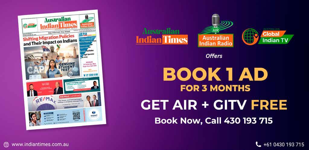 Australian Indian Times 2/3 Curban Street Underwood, QLD 4119 or E-mail: admin@jdmediacorp.com.au