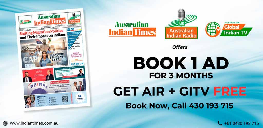 Australian Indian Times 2/3 Curban Street Underwood, QLD 4119 or E-mail: admin@jdmediacorp.com.au