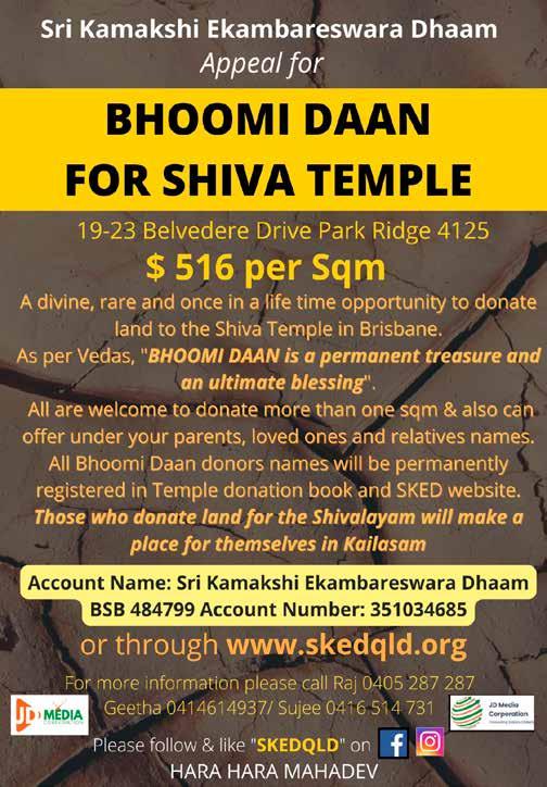 team—predominantly including the EMC members, led by Pt Anant Sharma together with the project team under the joint leadership of VPs Narendra Singh and Divendra Prasad & Secretary Rajendra Prasad, who alongside an extrordinary group of volunteers took ownership of this project and delivered it for the Sanatan community of Brisbane in the most costeffective way. Had the project been outsourced the cost would have in the vicinity of $6M-$7M.