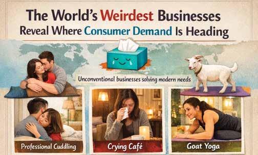 From paid companionship to emotional release spaces, these “weird” business concepts reflect deeper shifts in consumer behaviour around loneliness, burnout, time scarcity and experienceled spending — trends Australian and US buyers are increasingly paying attention to.