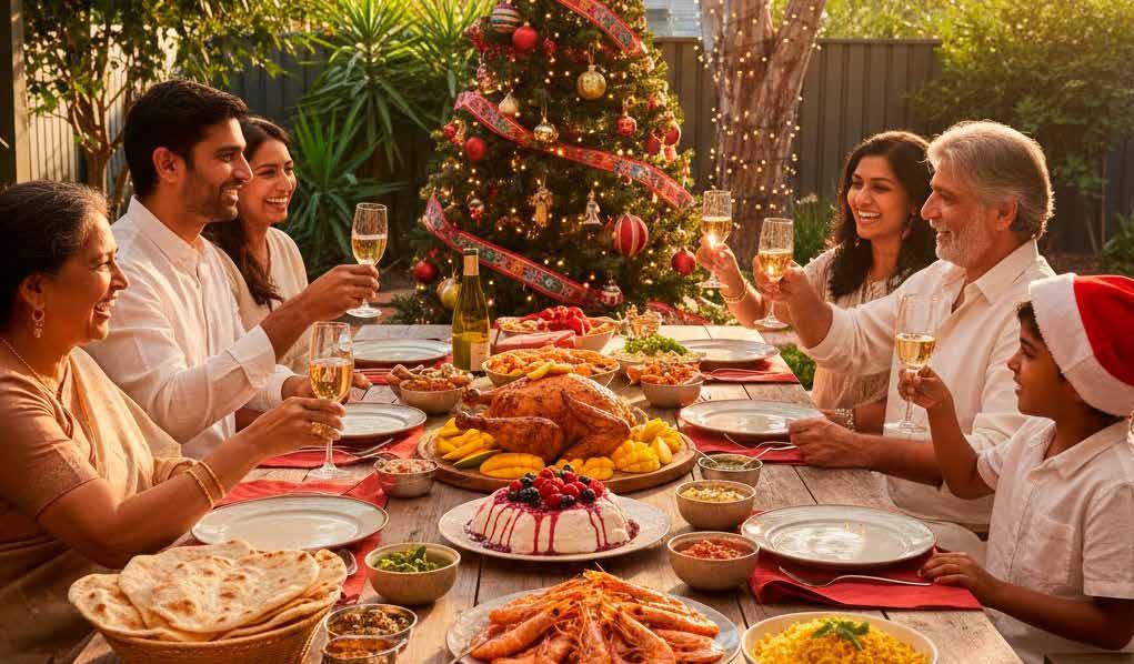 • A "Brown Christmas" Fusion: The most delicious and visible form of integration is in the food. The traditional Aussie prawn platter and pavlova are now often served alongside Indianinspired delicacies. A Christmas dinner in an Indian Australian home might feature: