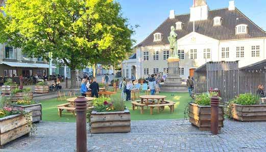 Rådhushaven er placeret midt i centrum af Randers midtby og med udsigt til både byens charmerende rådhus og den lokale sagnhelt Niels Ebbesen.
