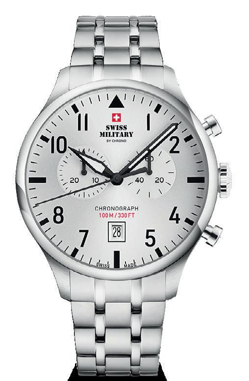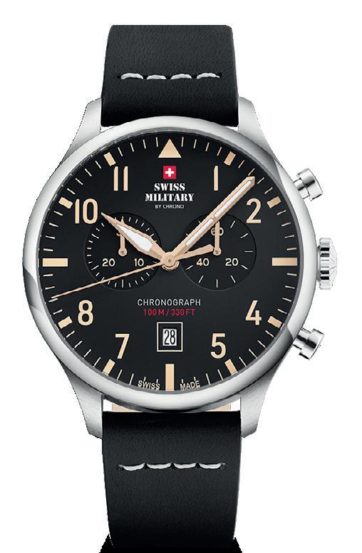 Die von der Chrono AG gefertigten SWISS MILITARY-Uhren sind auf der ganzen Welt für herausragendes Design und höchste Qualität bekannt. Durch ihren sportlichen Look und ihre kühne Ausstrahlung sind diese Uhren wie geschaffen für alle, die einen aktiven Lebensstil pflegen – ob in Beruf oder Freizeit. Die Marke und ihre Uhrenmodelle verkörpern auf ideale Weise die unverwechselbaren und hoch geschätzten Schweizer Werte Präzision und Qualität. Als offizieller Lizenznehmer der Schweizer Eidgenossenschaft ist Swiss Military by Chrono eine Partnerschaft eingegangen, die das Ziel verfolgt, die Marke Swiss Military global zu festigen und weiter zu etablieren. Zuverlässigkeit, Präzision, Qualität und Innovation sollen als Markenzeichen gelten.