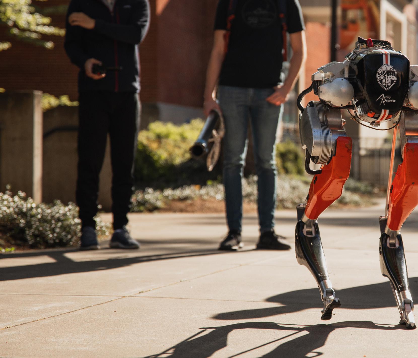 Cassie the robot, invented at OSU’s College of Engineering and produced by OSU spinout company Agility Robotics, earned a Guinness World Record for the fastest 100 meters by a bipedal robot in 2022.