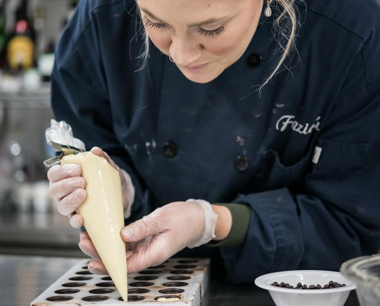 On a recent chilly Friday afternoon, the chocolatiers at Fazio’s Chocolate are busier than Santa’s elves as they meticu lously create batches of some of the shop’s most beloved seasonal candies.