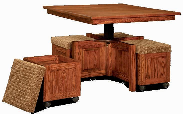 AA&J table and bench sets are amazingly functional and flexible. They combine Arts & Crafts styling with modern configurations including open stools, stools with enclosed storage and lift sets.