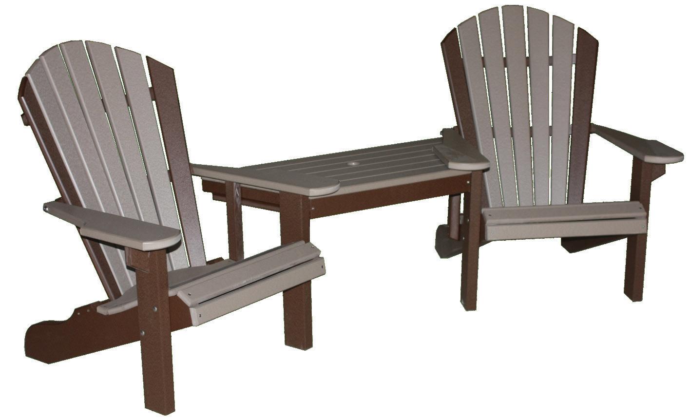 Tete-A-Tetes are our regular styles made for two! These cute sets are beckoning - so go ahead and relax with someone else. The Tete-A-Tetes have a functional table attached in between to allow space for an umbrella, beverage or book. Table slides out for easy transport or to simply use as individual chairs.