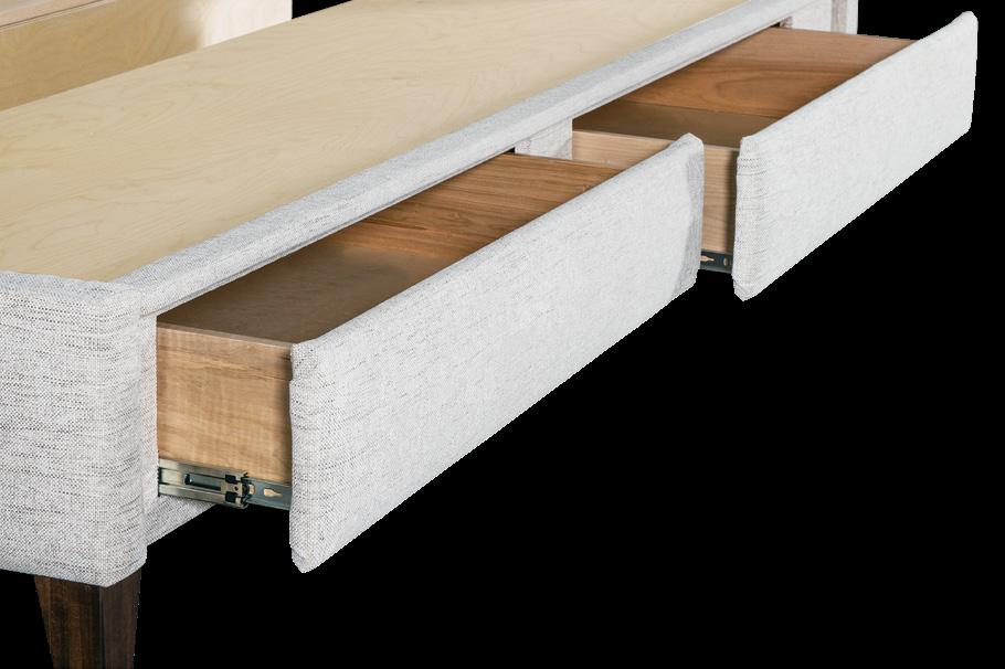 • Soft-close under mount drawers 18" deep in dressers and chests