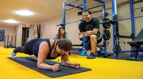 Personal trainer Chelsea Gaffan coaches her client, Jessica Sikora (front), as she holds a plank and Remi Sovran, owner of Ambassador Fitness & Performance Centre cheers her on. Photo by Tina Huynh.