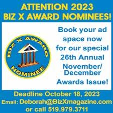 Biz X MAGAZINE, OWNED BY 1277025 ONTARIO LTD. IS PUBLISHED EACH MONTH WITH THE EXCEPTION OF DOUBLE ISSUES IN THE SUMMER AND NOV/DEC. THE MAGAZINE IS ONLY SOLD ON NEWSSTANDS IN ONTARIO FOR $3.50 PER COPY PLUS HST AND PERSONAL SUBSCRIPTIONS MAY BE ORDERED FOR $45 PLUS HST FOR 10 ISSUES IN CANADA. THE ACCEPTANCE OF ADVERTISEMENTS DOES NOT CONSTITUTE AN ENDORSEMENT OF THE PRODUCTS OR SERVICES ADVERTISED. THE PUBLISHER DOES NOT ASSUME RESPONSIBILITY FOR INFORMATION PROVIDED IN EDITORIALS AND CONTRIBUTIONS BY COLUMNISTS AND ADVERTISERS. THE VIEWS EXPRESSED IN ANY EDITORIAL COLUMNS DO NOT NECESSARILY REFLECT THE OPINIONS OF THE PUBLISHER. INFORMATION IS TIMELY AS OF OUR PRINT DEADLINE. Biz X MAGAZINE IS A REGISTERED NAME OF 1277025 ONTARIO LTD. ALL RIGHTS RESERVED. MAY NOT BE REPRODUCED WITHOUT PERMISSION. CONTENTS COPYRIGHT ©2023 BY 1277025 ONTARIO LTD.