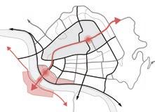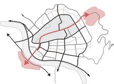 PROS: Both modes of transportation are equally served; A clear destination of the green axis in the urban context