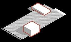 The "L" shape building is constituted of two volumes - vertiport and ferry building. These two main programs are connected by the central plaza, which is also the destination of green belt. The driveway goes around the inner coner of the "L" shape building to pick up and drop off passengers.